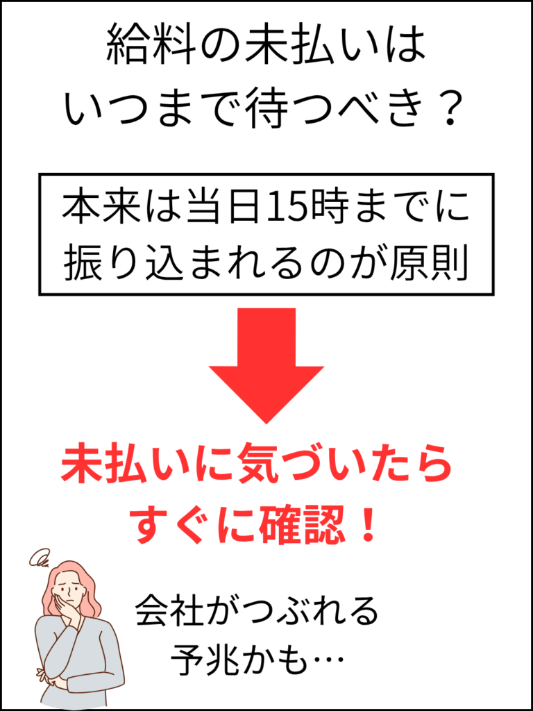 給料の振込が予定日に行われないと不安が生じますが、すぐに会社に確認してください。