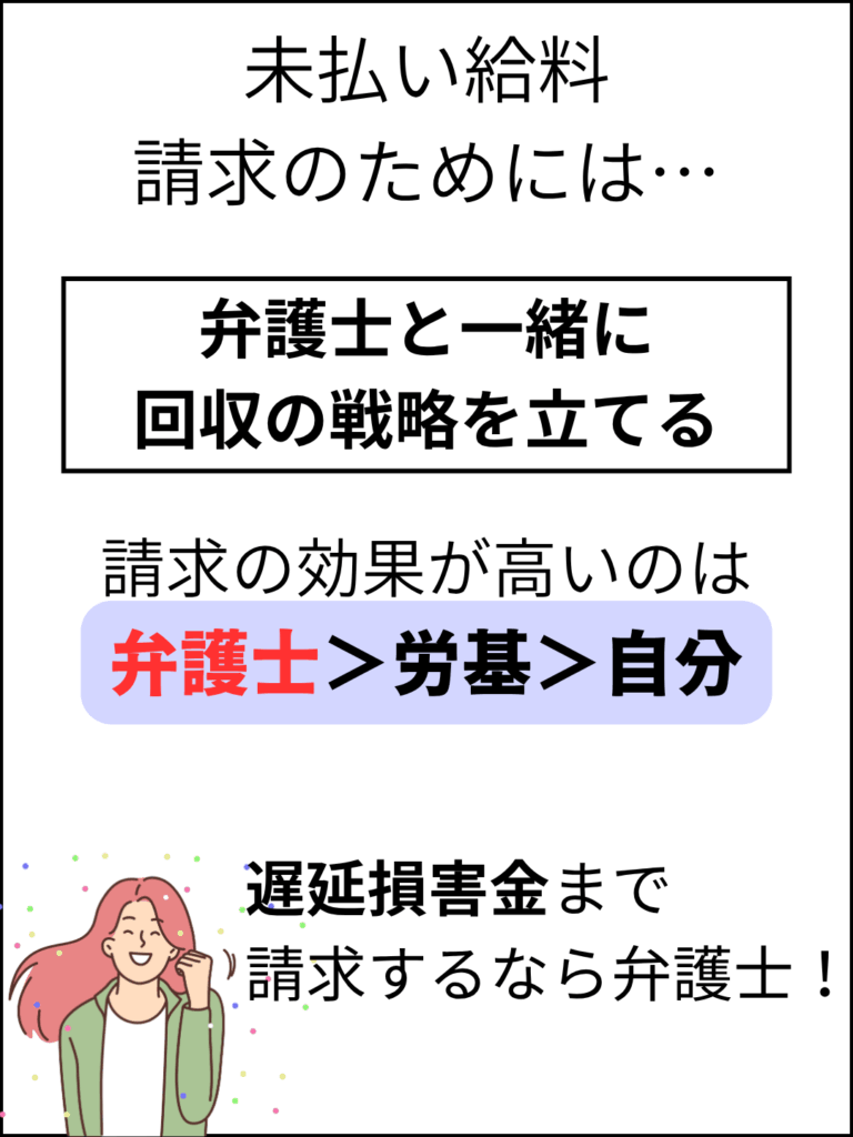 これにより、請求権を守りつつ、早期に給料を回収できる可能性が高まるのです。